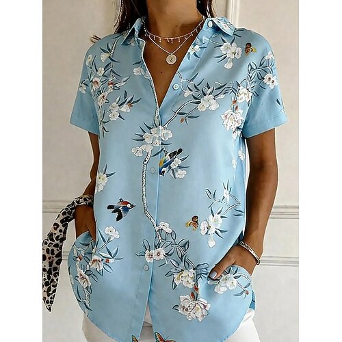 Per donna Camicia Camicia button-down Camicia casual Top estivi Bottoni Stampato Floreale Grafico Vintage Elegante Moderno Manica Corta Colletto a Camicia Top lunghi Quotidiano Verde chiaro Viola