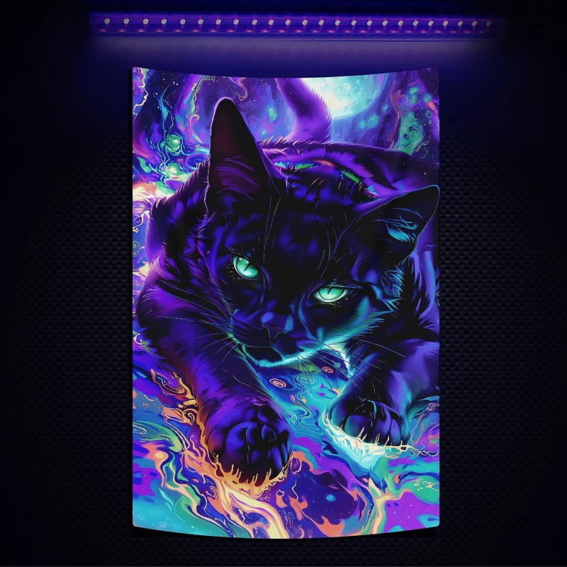 Blacklight Tapestry Glow in the Dark Glow Party UV Reactive Cat Trippy Misty Hanging Tapestry Wall Art Mural for Living Room Bedroom
