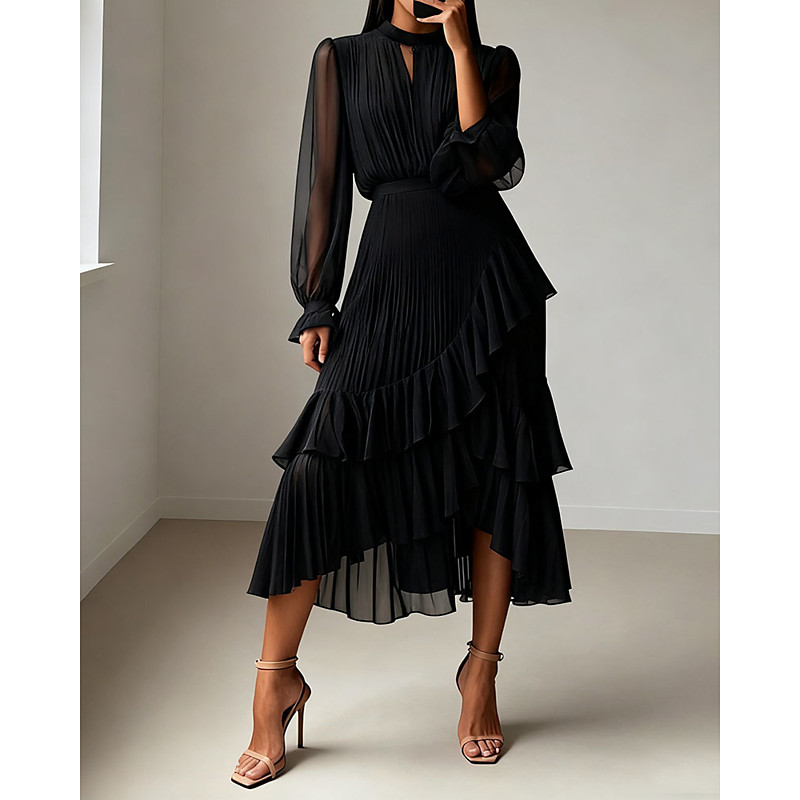 Women's Midi Dress Black Dress Casual Dress Elegant Fashion Modern Office Daily Holiday Regular Fit Plain Long Sleeve V Neck Black Wine Navy Blue Dark Green Spring Fall Winter