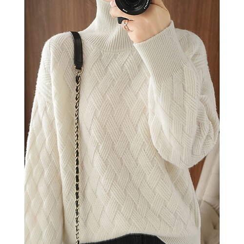 Per donna Felpa Maglione Elegante Streetwear Casual Tinta unica Dolcevita Lavorato a maglia Manica Lunga Top Regolari Maglia Quotidiano Ferie Uscire Nero Bianco Autunno Inverno