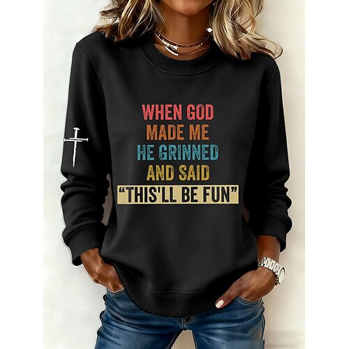 Per donna Felpa Pullover Felpe con cappuccio Grafico Lettera Moda Casual Manica Lunga Girocollo Top Regolari Streetwear Abbigliamento Quotidiano Stampato Nero Bianco Grigio Primavera Autunno Inverno