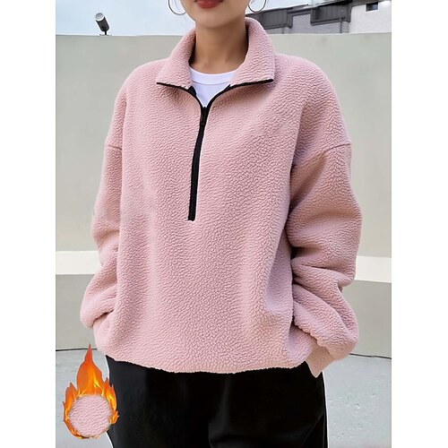 Per donna Giacche strutturate Felpa Pullover Semplice Caldo Attivo Pagliaccetto Manica Lunga Mezza zip Top Regolari Casa Streetwear Abbigliamento Quotidiano Cerniera Nero Rosa Verde Beige Primavera
