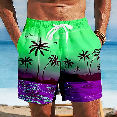 Per uomo Albero di Cocco Piante Tropicali Costumi da bagno Pantaloncini da mare Pantaloncini da Surf Misura del girovita medio Stampa 3D Hawaiano Surf Ferie Spiaggia Coulisse con fodera in rete