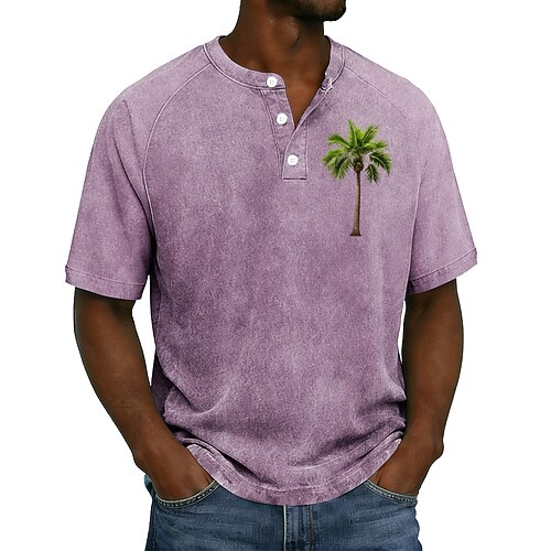 Per uomo Albero di Cocco Vintage Lavato Maglietta Top Henley Camicia lavata Manica Corta Vintage Designer Casual Casuale Quotidiano All'aperto Estate Primavera Tutte le stagioni Blu chiaro Viola