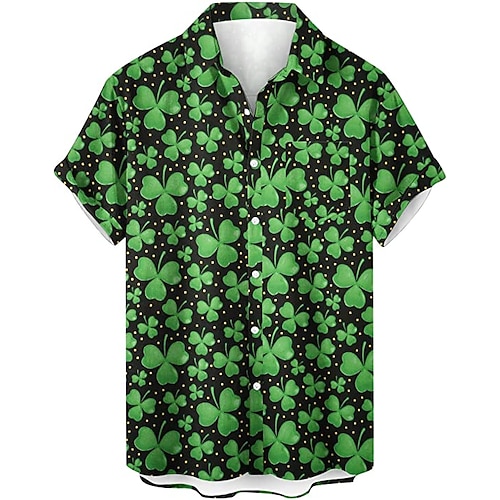 camicia da uomo per il giorno di san patrizio camicia hawaiana estiva stampe grafiche giorno di san patrizio st. giorno di san patrizio trifoglio turndown giallo chiaro verde / nero verde oliva
