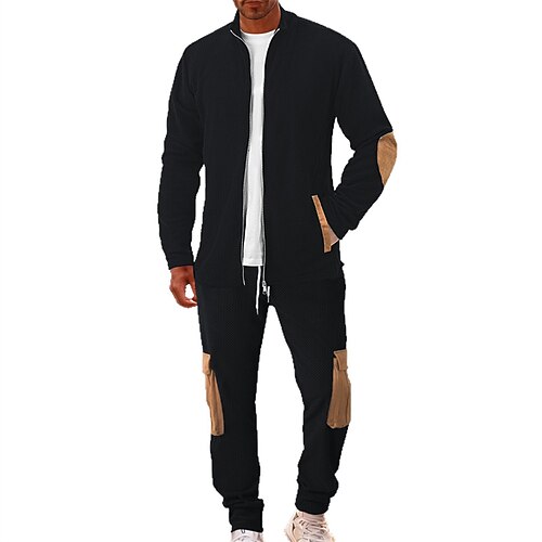Per uomo Maglia Tuta da Ginnastica Set di abiti Collo alla coreana All'aperto Quotidiano Sportivo Coulisse Con zip Tasca Blocco di colori Nero Azzurro cielo Verde militare Pile Poliestere