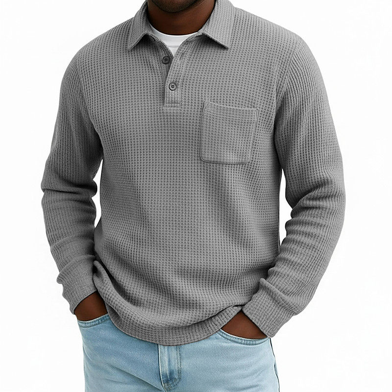 Men's Golf Polos Shirts Waffle Knit Polo Shirt Casual Business Ribbed Polo Collar Long Sleeve Fashion Basic Solid Color Knitting Fall Winter All Seasons Regular Fit Wine Navy Blue Green Gray Light