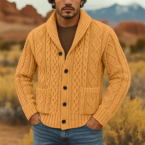 Per uomo Felpa Cardigan A Coste Treccia Maglia Top Regolari Lavorato a maglia Semplice Collo a scialle Vacanza Moda Casuale Abbigliamento quotidiano Abbigliamento Primavera Autunno Rosa Rosa S M L