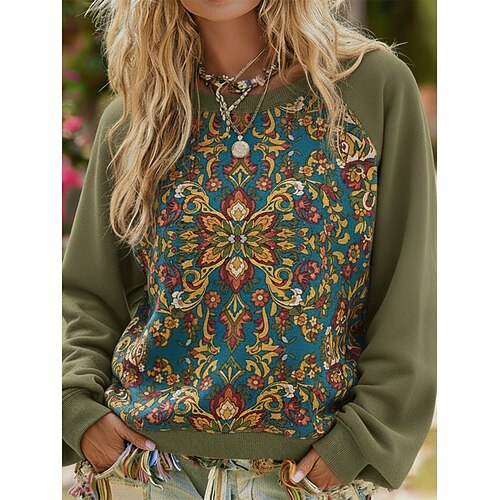 Per donna Pullover Felpe Floreale Grafico Vintage Streetwear Manica Lunga Girocollo Top Regolari Abbigliamento Quotidiano Casuale Stampato Vino Viola Arancione Verde Primavera Autunno