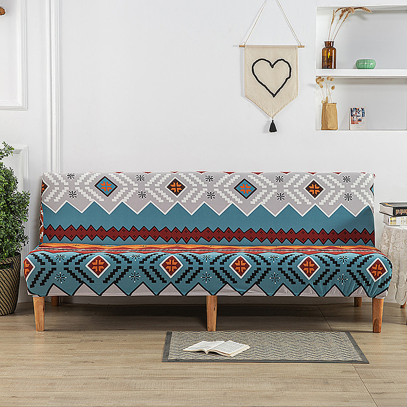 3 Different Sizes Printing Fabric Stretch Sofa Bed Cover Armless Sofa Slipcovers Elastic Bench Cover New Year Decor Protector