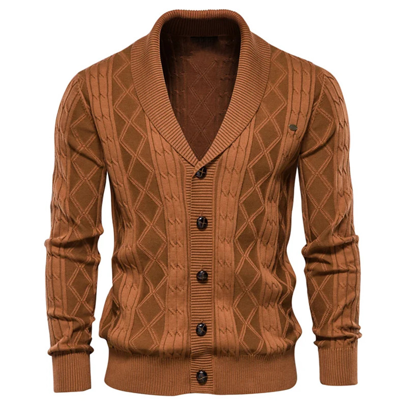 Men's Cardigan Sweater Knit Patchwork Zipper Solid Color Rolled collar Knitwear Elegant School Training Clothing Apparel Fall Winter Red Brown Black S M L