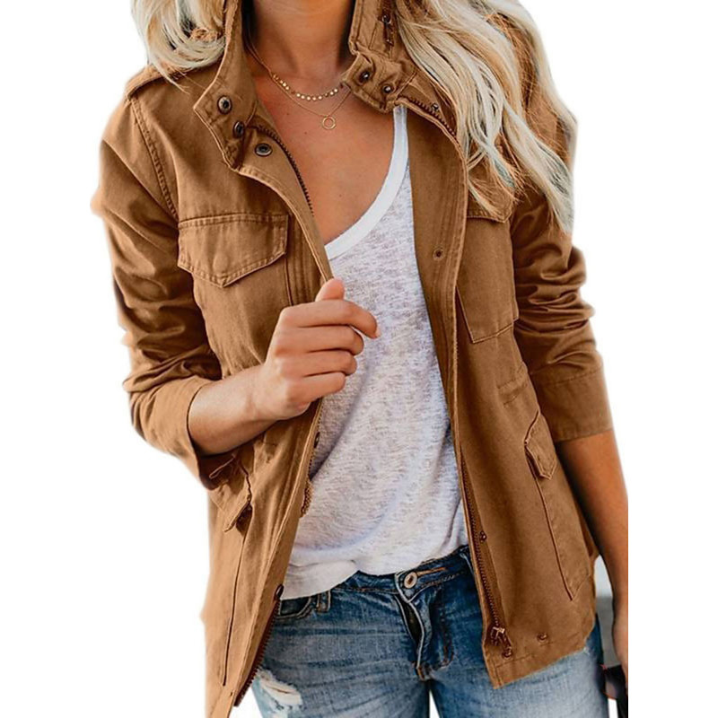 Women's Casual Jacket Comfortable Breathable Zipper Pocket Fashion Casual Plain Vacation Street Casual Daily Wear Zipper Regular Stand Collar Regular Fit Long Sleeve Outerwear Black Wine Brown Summer