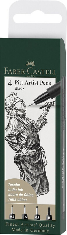 Tekenstiften Faber-Castell Pitt Artist Pen Etui 4-delig Zwart