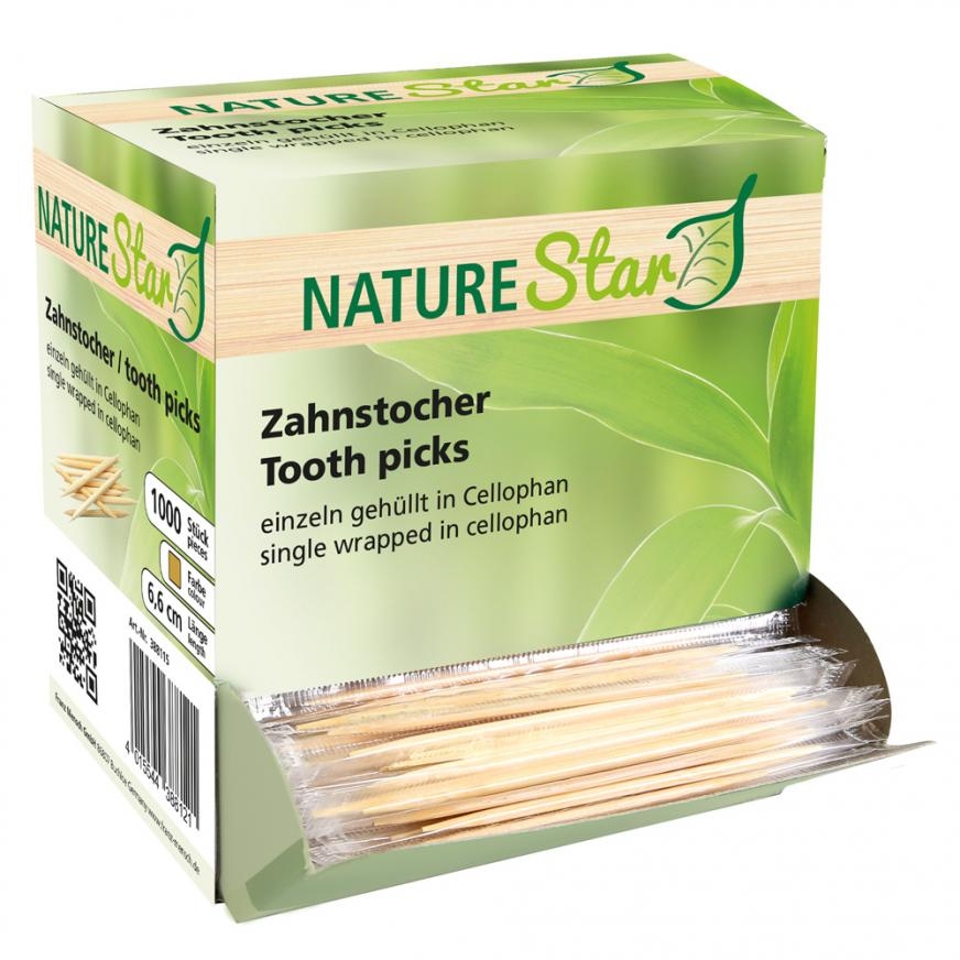 20x1000 Zahnstocher 6,5 cm Bambus in Cellophan gehüllt umweltfreundlich