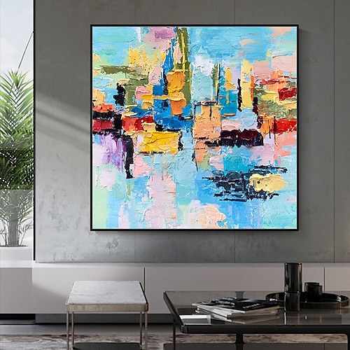 Handgemacht Hang-Ölgemälde Handgemalte Quadratisch Abstrakt Modern Ohne Innenrahmen (ohne Rahmen)