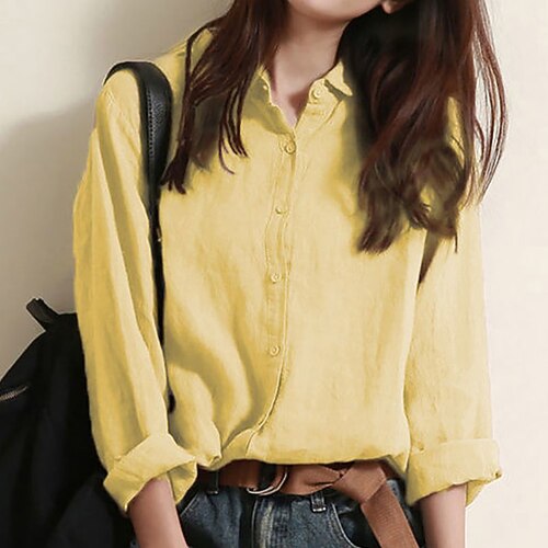 Per donna Camicie di cotone e lino Blusa Semplice Elegante Vintage Manica Lunga Colletto a Camicia Top Regolari Quotidiano Ferie Uscire Bottoni Nero Bianco Giallo Rosa Verde Estate Primavera
