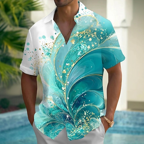 Per uomo Geometrico Marmo Arte liquida astratta Camicia Camicia Estiva Camicia con Bottoni Manica Corta Moda Casual Vacanza Ferie Abbigliamento casual alla moda Estate Collo ripiegato Stampa 3D Una