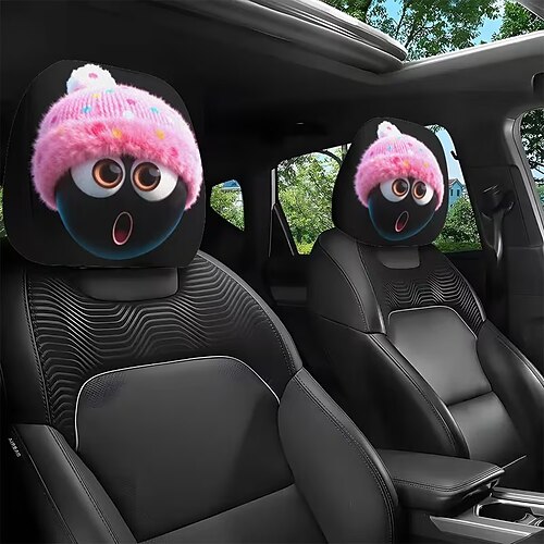 Copri poggiatesta per auto con stampa di cappello di Natale con espressione sorpresa, 2 pezzi, decorazione per auto, senza imbottitura, facile da installare e lavare, adatto per viaggi a lunga