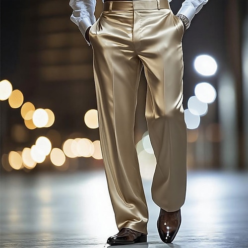 Per uomo Pantaloni Pantaloni Eleganti Come la seta Pantaloni in raso Pantaloni Larghi Tasca Gamba Dritta Semplice Traspirante Lunghezza intera Matrimonio Feste Affari Moda Streetwear Bianco Oro