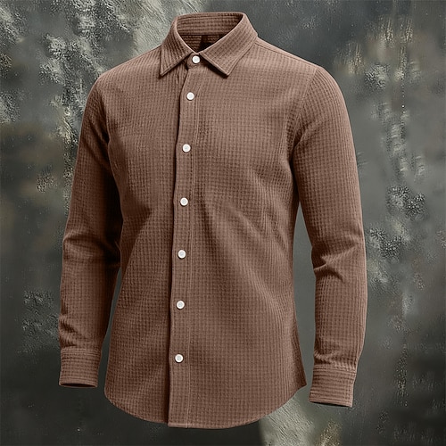 Per uomo Camicia Camicia a nido d'ape Camicia casual Camicia vintage Camicia con Bottoni Nero Bianco Rosso Blu marino Azzurro cielo Manica Lunga Semplice Bavero Casuale Quotidiano Abbigliamento Moda