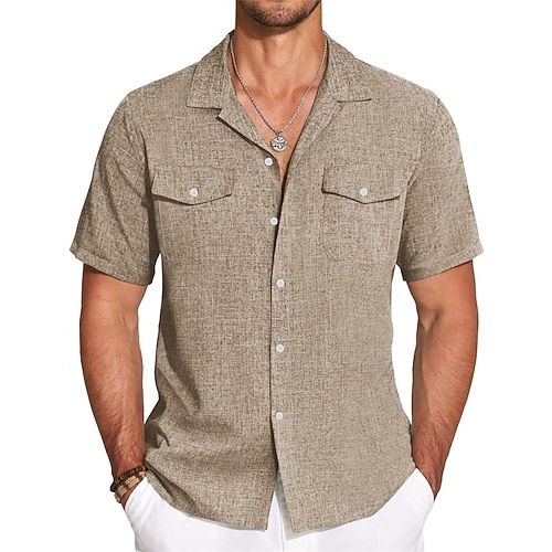 Per uomo Camicia Camicia Estiva Camicia da Spiaggia Camicia in cotone e lino Tinta unica Casuale All'aperto Nero Bianco Verde chiaro Blu marino Manica Corta Collo ripiegato Estate Abbigliamento Tasca
