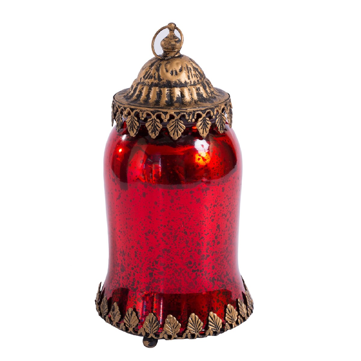 H&D Manufaktur Jinfa Glas Laterne in Rot mit LED Beleuchtung Ø 8 cm, Höhe 21cm,
