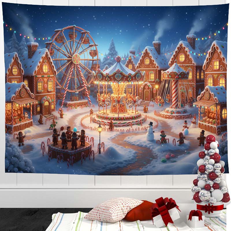 Christmas Snow Scene Tapestry – Winter Wonderland Wall Hanging, Snowflake Forest Landscape Christmas Tree Pattern Decorative Tapestry for Home Bedroom Living Room Holiday Decoration