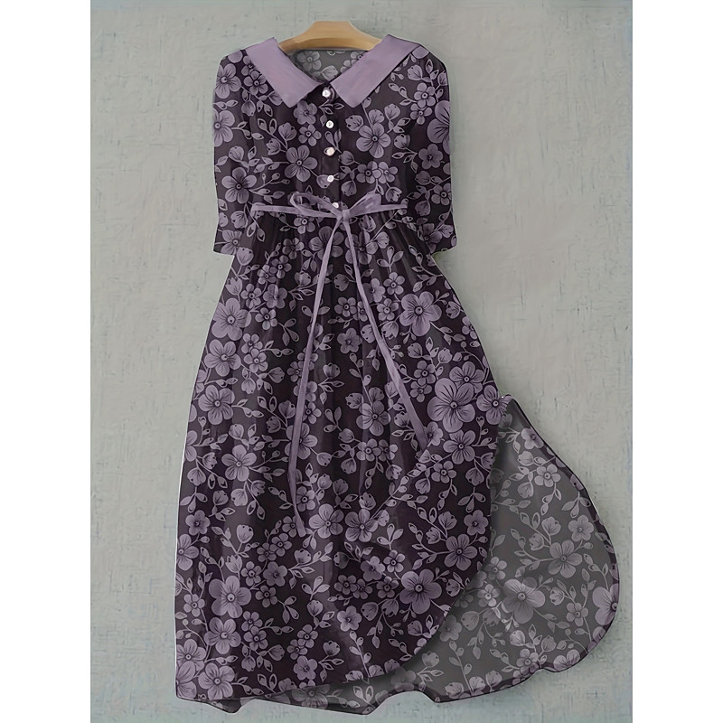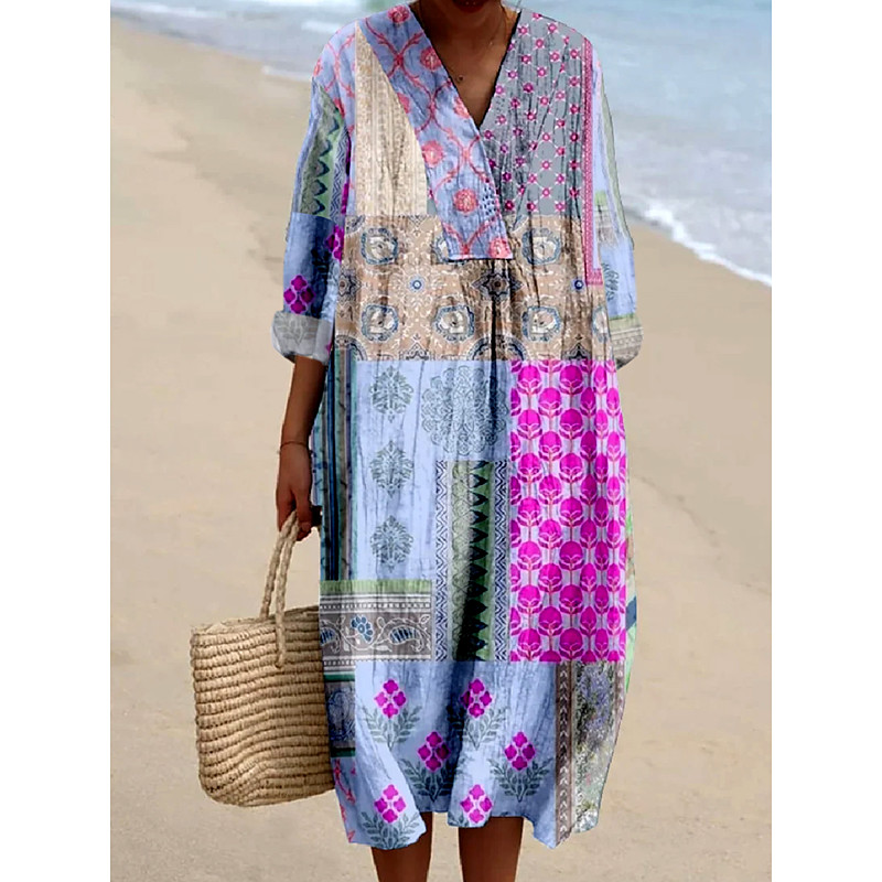 Women's Midi Dress Casual Dress Swing Dress A Line Dress Boho Dress Casual Daily Regular Fit Floral 3/4 Length Sleeve V Neck Pink Blue Apricot Summer Spring Fall