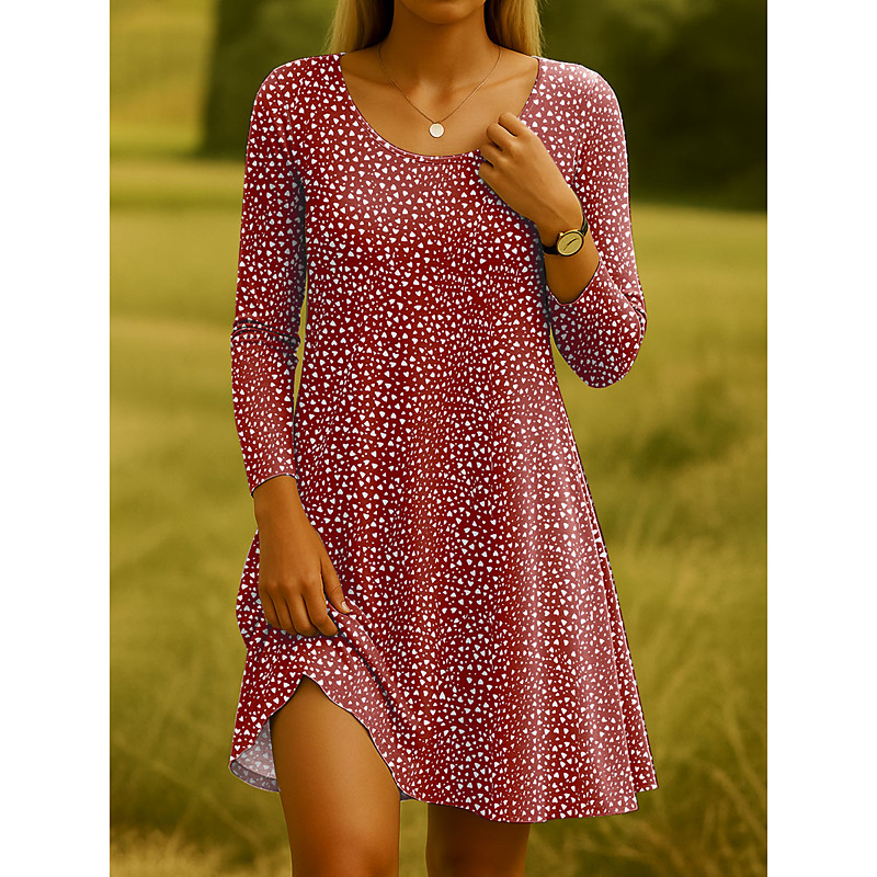 Women's Mini Dress A Line Dress Casual Daily Regular Fit Floral Plaid Long Sleeve V Neck Red Blue Gray Spring Fall