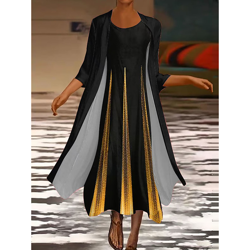 Women's Dress Set Shift Dress Summer Dress Casual Ombre Geometric Layered Print Midi Dress 3/4 Length Sleeve Crew Neck Daily White Yellow Orange Spring Fall Regular Fit