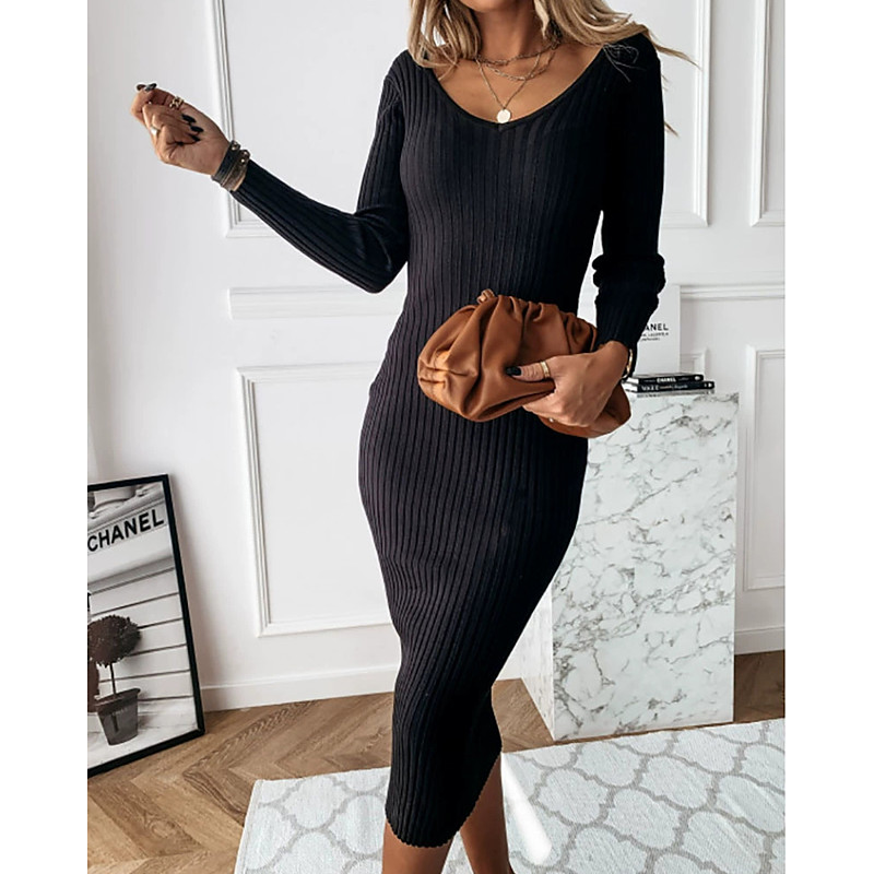 Women's Midi Dress Sweater Dress Casual Dress Elegant Fashion Modern Outdoor Daily Going out Regular Fit Plain Long Sleeve Crew Neck Black White Light Brown Blue Spring Fall Autumn