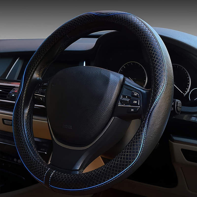 15in Steering Wheel Cover - Non-Slip Grip Soft PU Leather Steering Wheel Case with Anti-Slip design Compatible with Most Cars Trucks SUVs - Durable Easy-Clean Dashboard Protector for Drivers pa