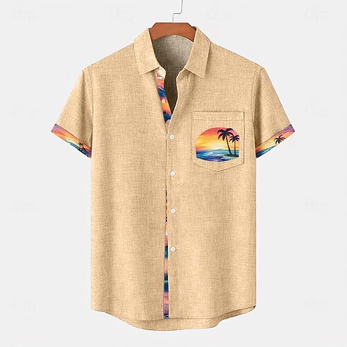 Per uomo Camicia Camicia di lino Camicia Estiva Camicia da Spiaggia Camicia con Bottoni Albero di Cocco Ferie Abbigliamento quotidiano Blu Rosa Verde Cachi Manica Corta Collo ripiegato Estate