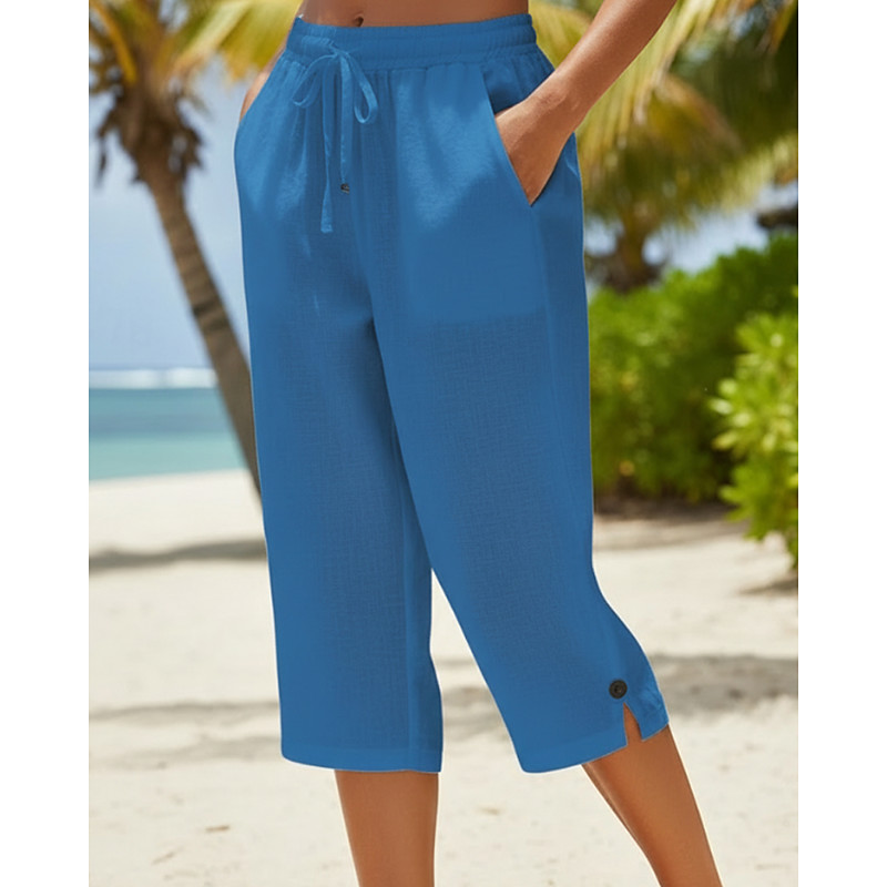 Women's Capri Pants Chinos Streetwear Basic Casual Calf-Length Medium Waist Plain Drawstring Pocket Comfy Stretchy Daily Outdoor Street Blue White Pink Orange Summer Spring Loose Fit