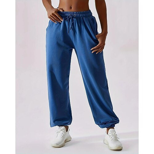 Per donna Pantaloni da tuta Chinos Dritto Streetwear Casual Lunghezza intera Vita media Semplice Tasca Design con Coulisse Elastica Confortevole Micro-elastico Quotidiano All'aperto Vacanza Blu Nero