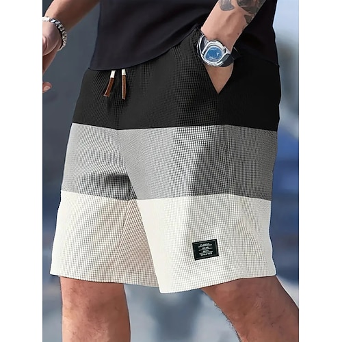 Per uomo Pantaloncini Waffle Shorts Pantaloncini casual Tasca Elastico in vita Semplice Comodità Traspirante Lunghezza al ginocchio Casuale All'aperto Spiaggia Vacanza Moda Nero Bianco Inelastico