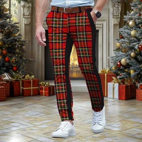 Per uomo Plaid Pantaloni Eleganti Misura del girovita medio Business Casual Formale Abbigliamento Quotidiano Cerniera Tasca Estate Primavera Autunno Stampa 3D Marrone scuro Nero Rosso