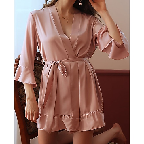 Per donna Accappatoio Casual Morbido Raso Colore Puro Quotidiano Casa Da letto Manica Corta Scollo a V Nero Bianco Verde chiaro Rosa Blu marino Estate Vestibilità regolare