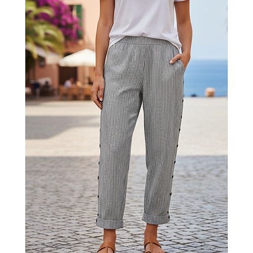 Per donna Chinos Pantaloni harem Streetwear Casual Lunghezza intera Vita media A righe Tasca Fascia Elastica Comodo Comodità Micro-elastico Quotidiano Casa All'aperto Grigio chiaro Bianco Rosa Verde