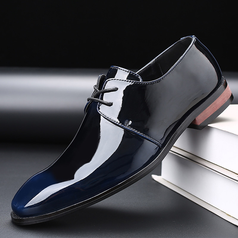 Men's Faux Leather Patent Oxford Shoes – Black Lace-Up Formal Dress Shoes for Weddings, Business Meetings and Evening Events