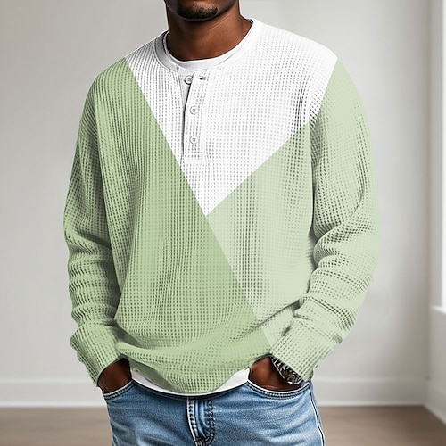 Herren Grafik Geometrisch Farbblock Waffel-Henley-Hemd Lässiger Stil Klassicher Stil Langarm Mode Designer Basic Lässig Täglich Outdoor Frühling Herbst Ganzjahres Hellgrün Hellblau Violett Kaki