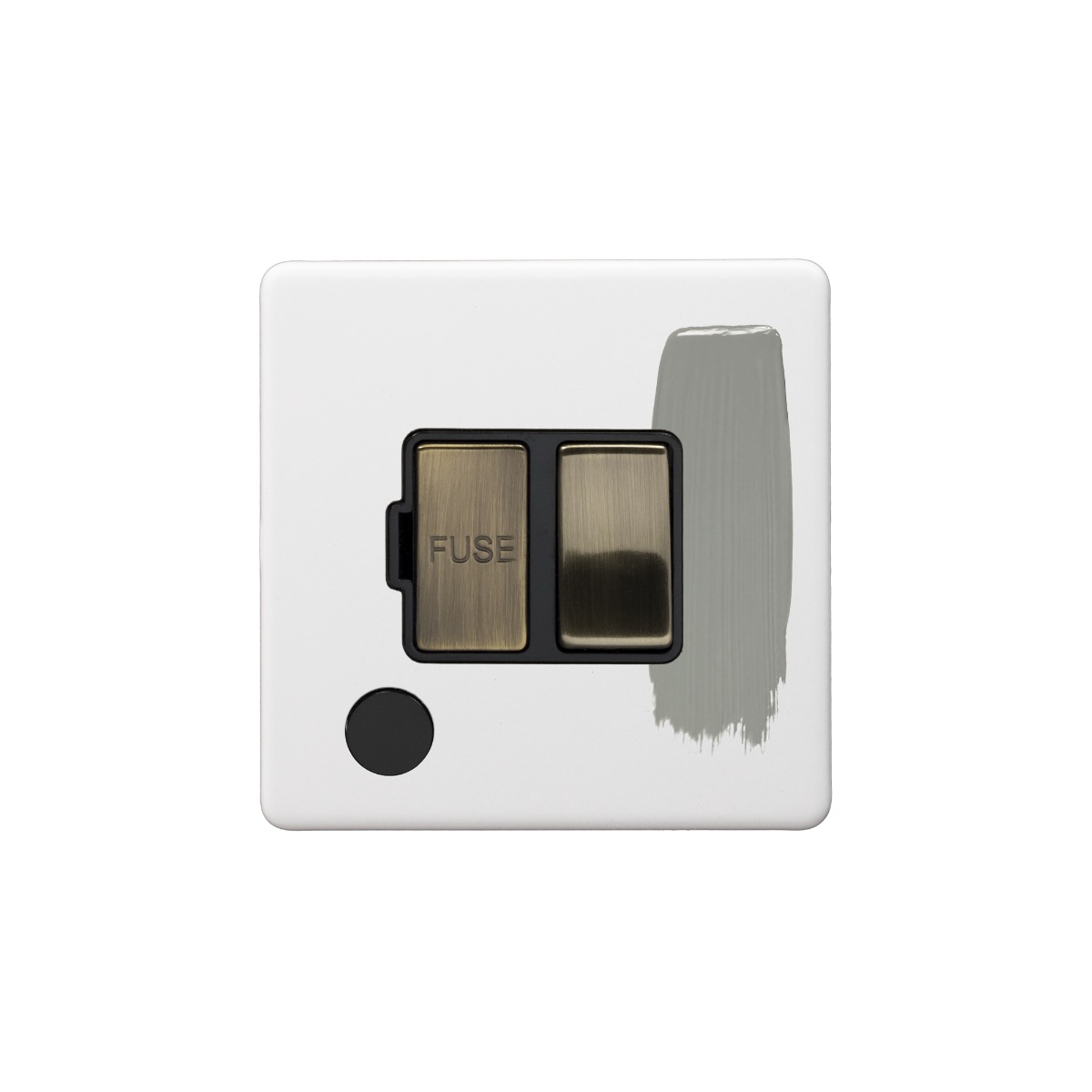 Soho Lighting Primed Paintable 13A Switched Fused Connection Unit (FCU) Flex Outlet with Antique Brass Switch