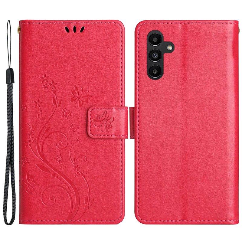Butterfly Samsung Galaxy A55 5G Fodral KonstLäder - Röd