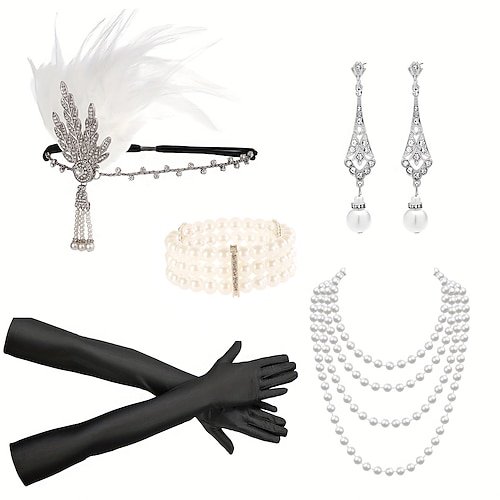 Accessori flapper anni '20, set di accessori per costumi Gatsby per donne, copricapo anni '20, collana di perle, porta guanti