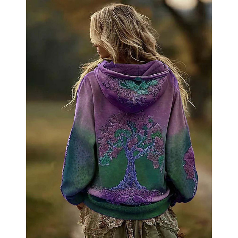Women's Zip Up Hoodies Floral Graphic Active Vintage Western Long Sleeve Hooded Regular Tops Home Work Street Zipper Blue Purple Green Spring Fall Winter