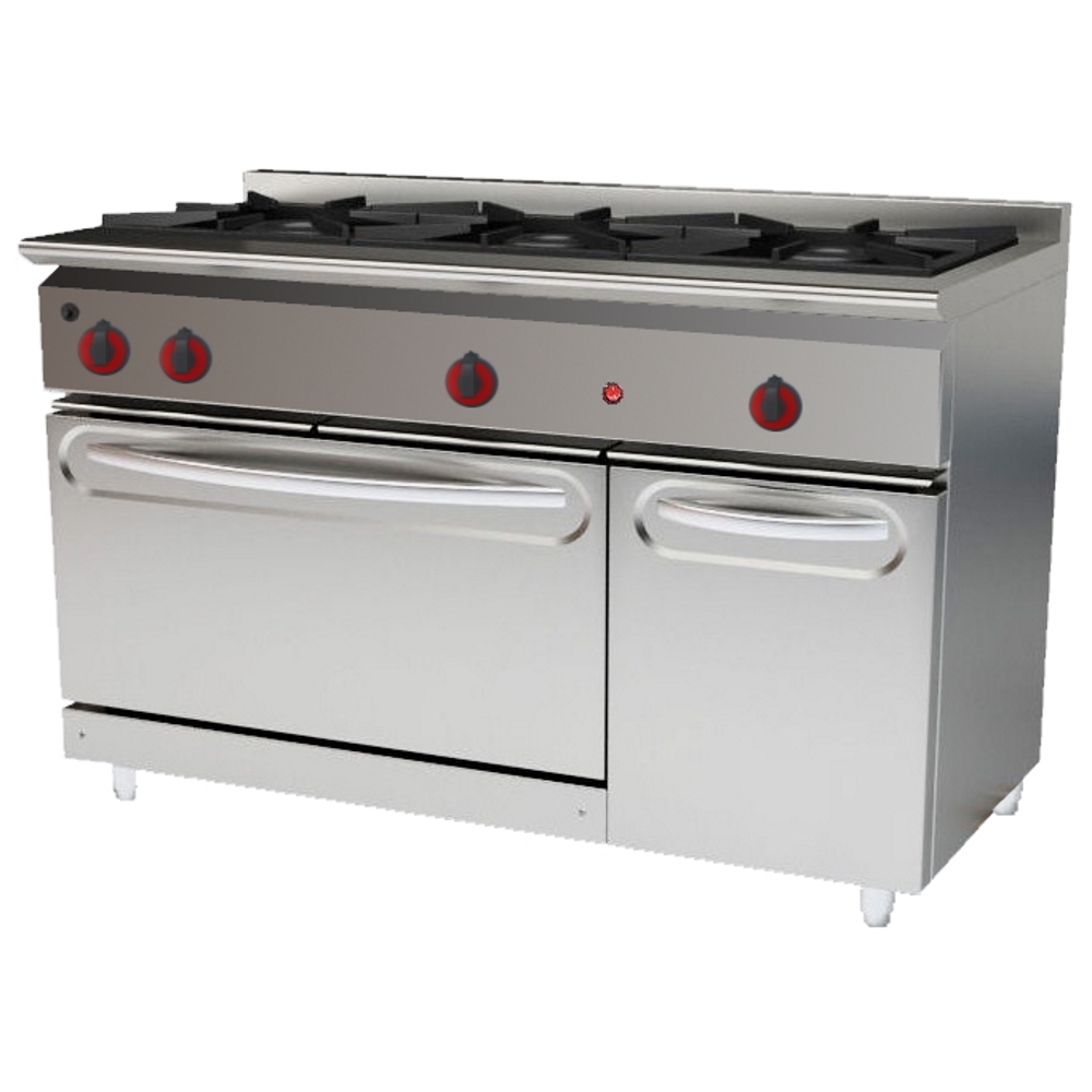 EURAST - Gasherd mit 3 brennern 1 statischer ofen 660 x 400 mit grill - 1200x550x850 mm - 22,5 Kw + 2,25 KW 230/1V - 33021255