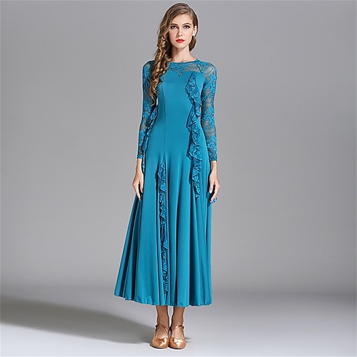 Balli da Sala Vestito Strass Giunzione Per donna Performance Allenamento Manica Lunga Spandex Rete