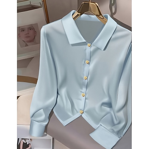 Per donna Camicia Camicia button-down Camicia casual Bottoni Semplice Elegante Classico Moderno Manica Lunga Colletto a Camicia Top Regolari Quotidiano Ferie Uscire Vino Fucsia Azzurro Estate
