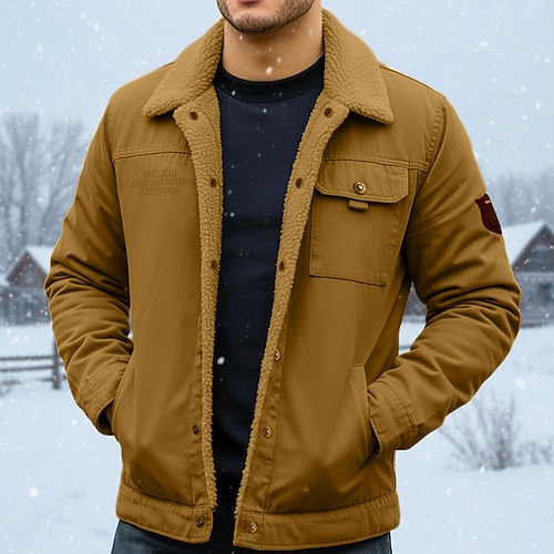 Per uomo Giacca in Pile Giacca Cargo Giacca da Lavoro Formale Casa Giacca a Vento Durevole Tasca Colletto in pile Autunno Inverno Tinta unica Attivo Vintage Colletto Regolare Blu marino Verde scuro