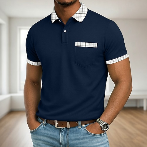Per uomo Maglia da golf Polo Piqué Casuale Affari Classico Manica Corta Moda Essenziale Tinta unica Plaid Bottoni Estate Primavera Primavera Autunno Vestibilità regolare Bianco Vino Blu marino Verde